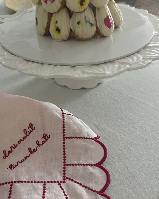 Embroidered Linen Napkin - "𝓱𝓶𝓶 𝓼𝓮𝓭𝓪𝓹 𝓬𝓪𝓴𝓪𝓹, 𝓽𝓪𝓴 𝓼𝓮𝓭𝓪𝓹 𝓼𝓱𝓱𝓱𝓱..."